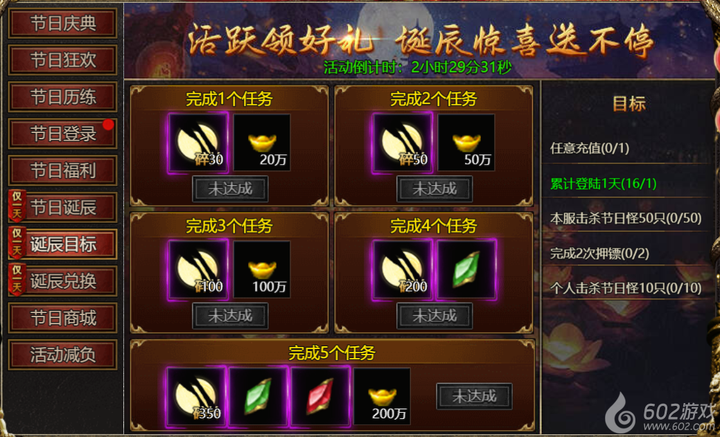 【活动内容】:当天完成目标任务,即可领取诞辰目标奖励!