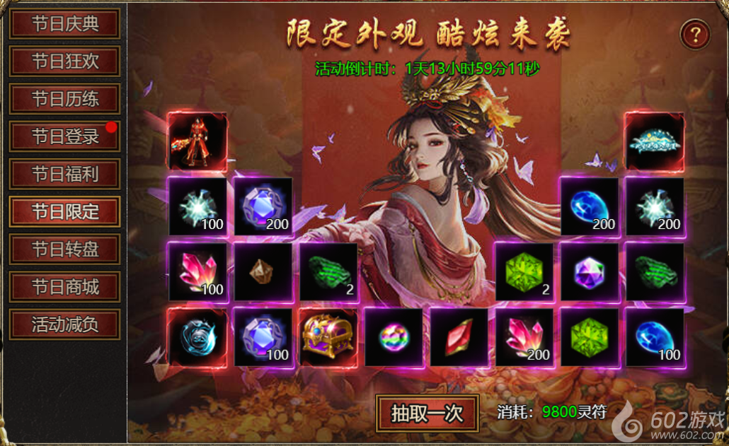 【活动内容】:使用灵符购买限定碎片并进行抽取奖励,抽满奖励全部获得。