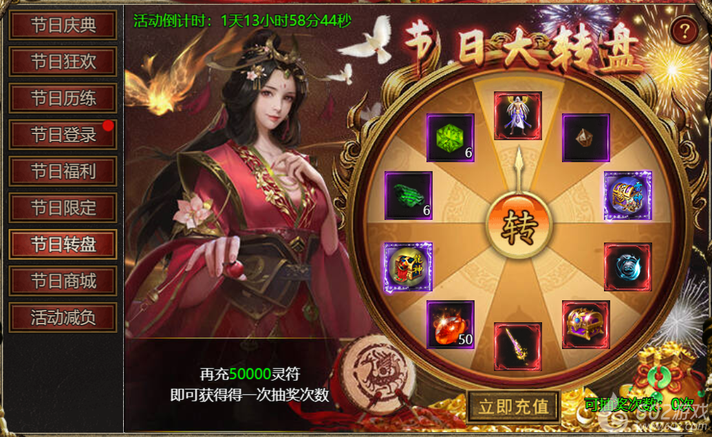 【活动内容】:活动期间,累计充值额度获得抽奖次数,抽取豪华奖励!